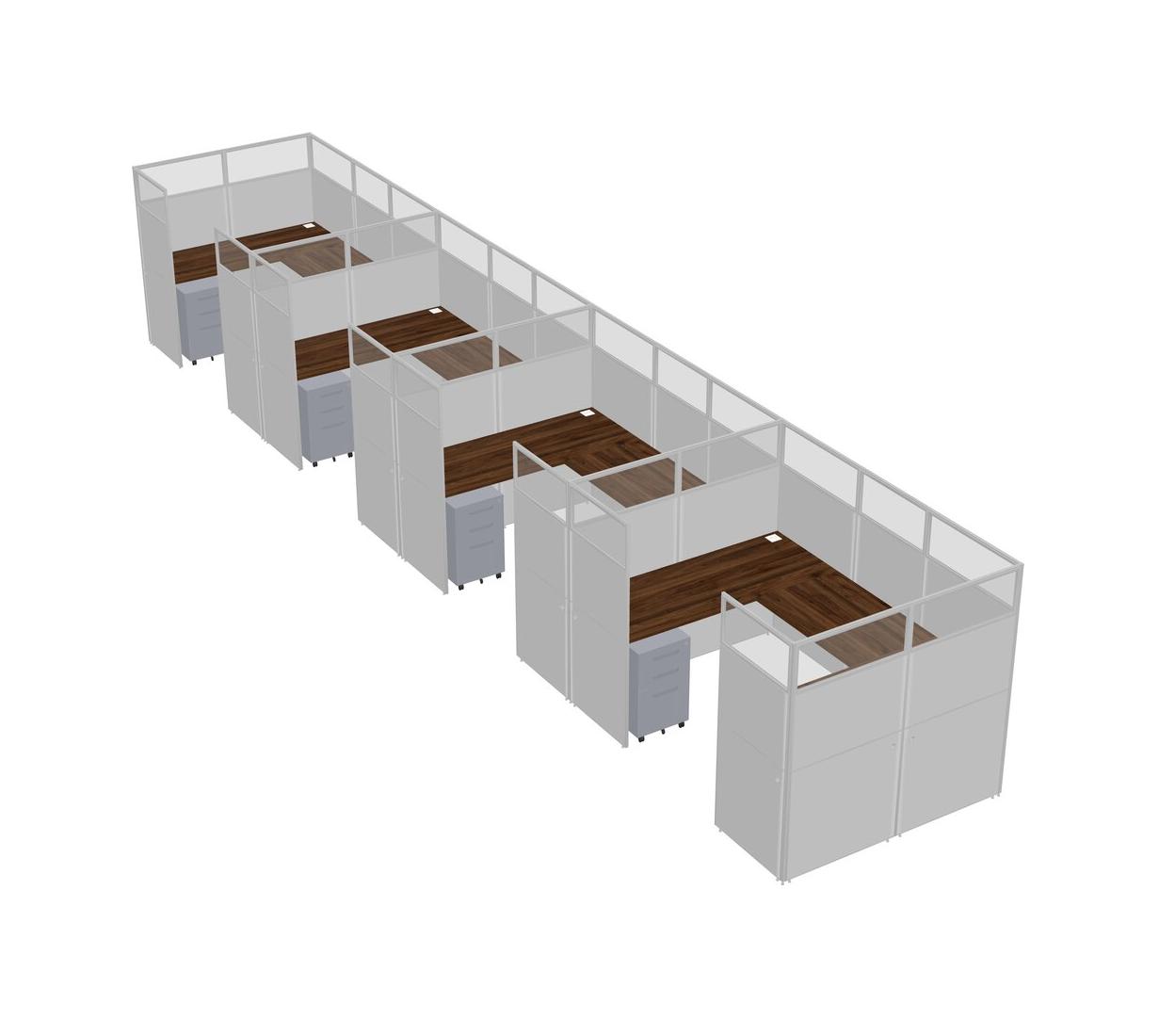 Columbia Walnut U-shaped Panel System For 4 Person + Metal Mobile Drawers For 4 User(s)