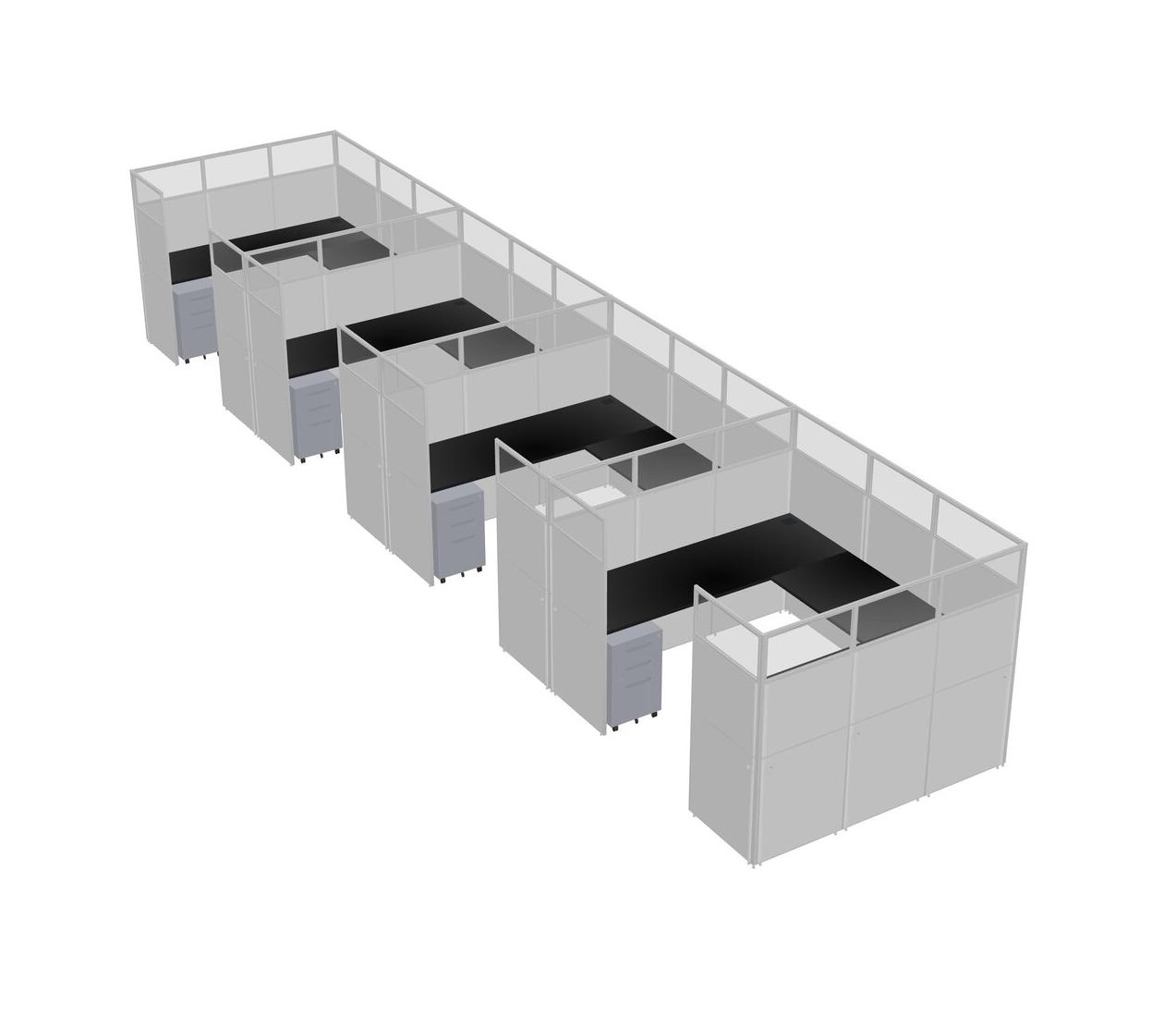 Black U-shaped Panel System For 4 Person + Metal Mobile Drawers For 4 User(s)