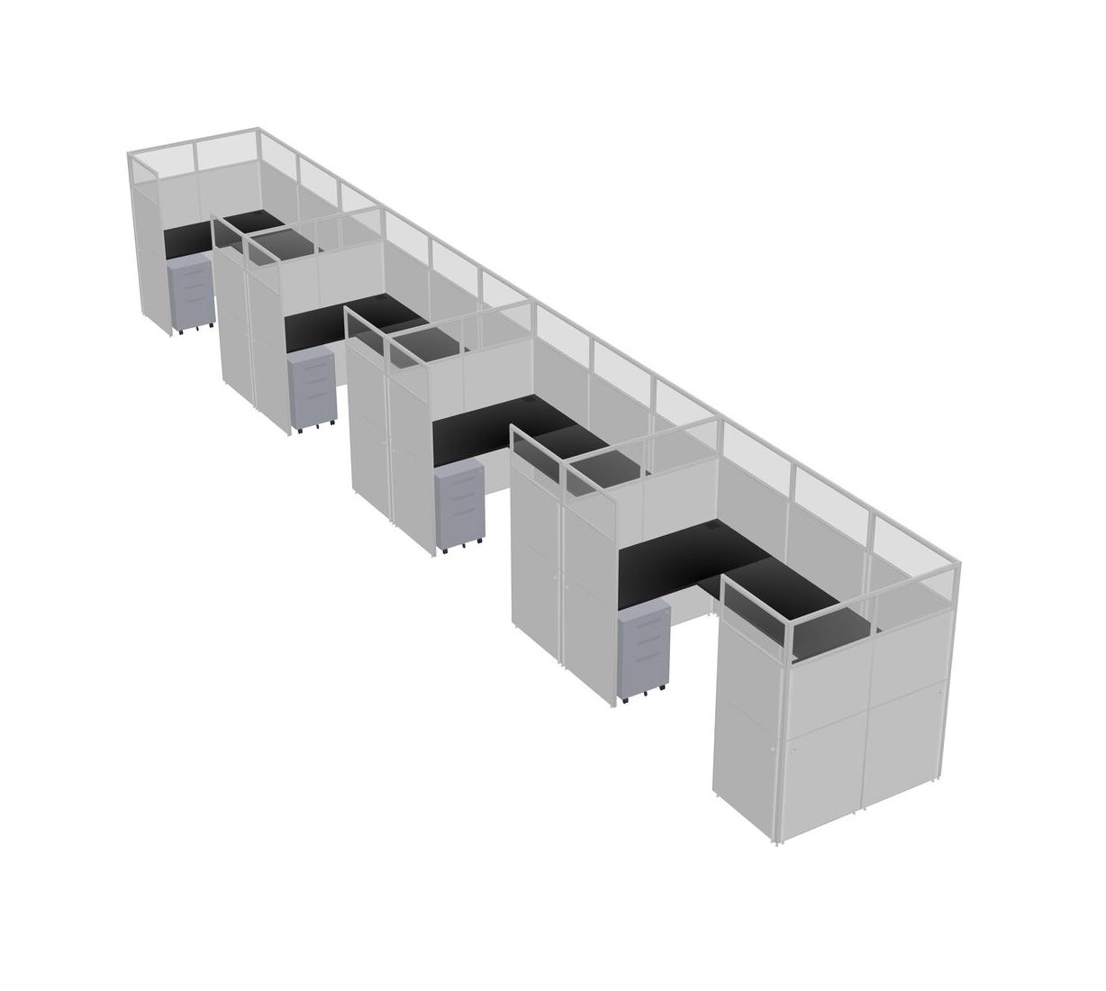 Black U-shaped Panel System For 4 Person + Metal Mobile Drawers For 4 User(s)