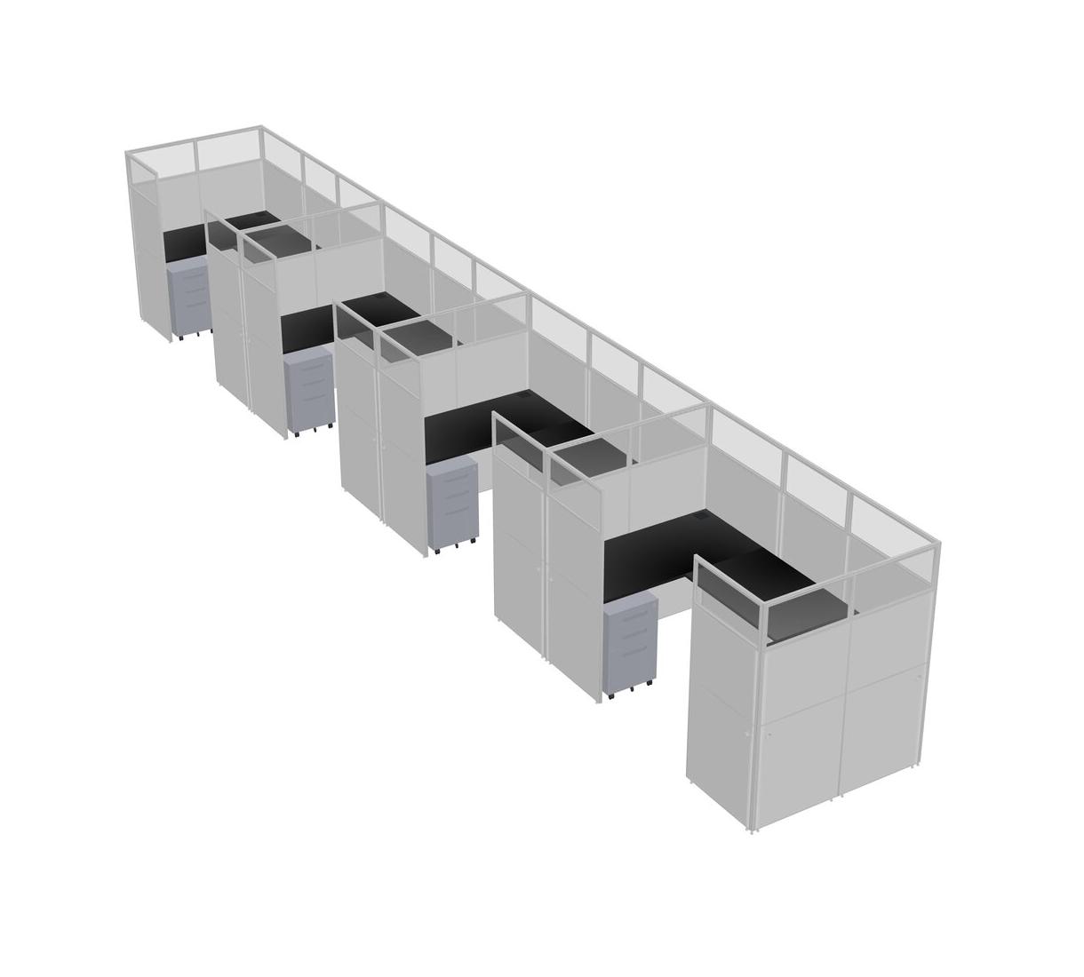 Black U-shaped Panel System For 4 Person + Metal Mobile Drawers For 4 User(s)