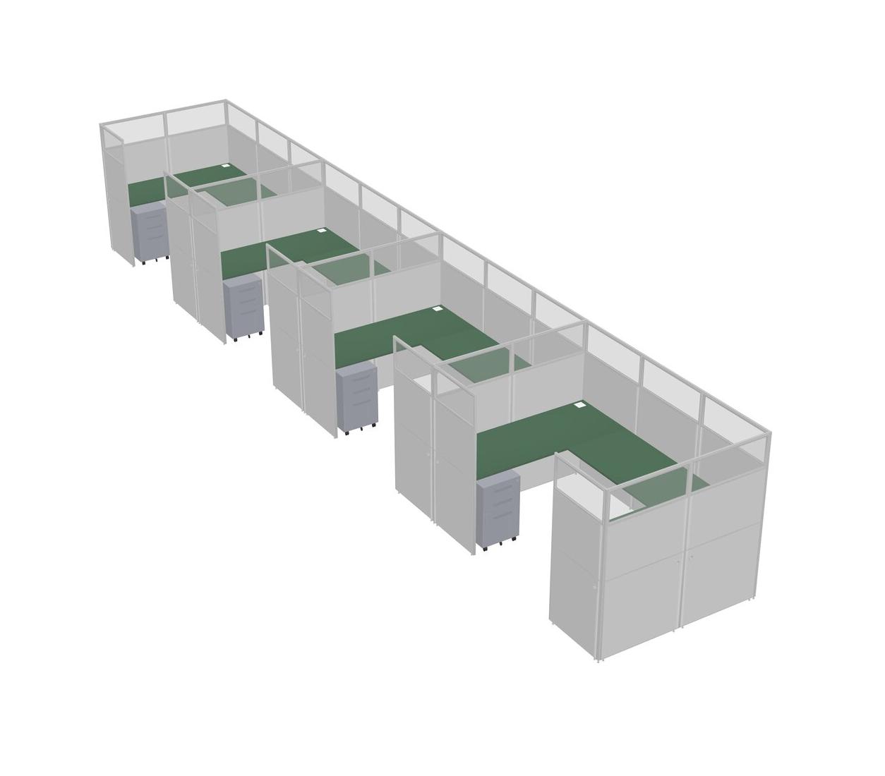 Green U-shaped Panel System For 4 Person + Metal Mobile Drawers For 4 User(s)