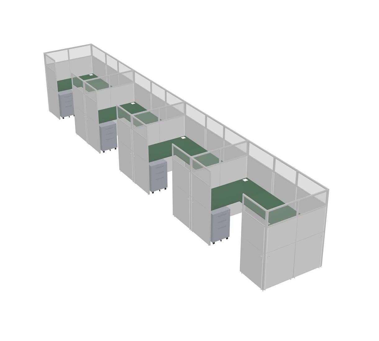Green U-shaped Panel System For 4 Person + Metal Mobile Drawers For 4 User(s)