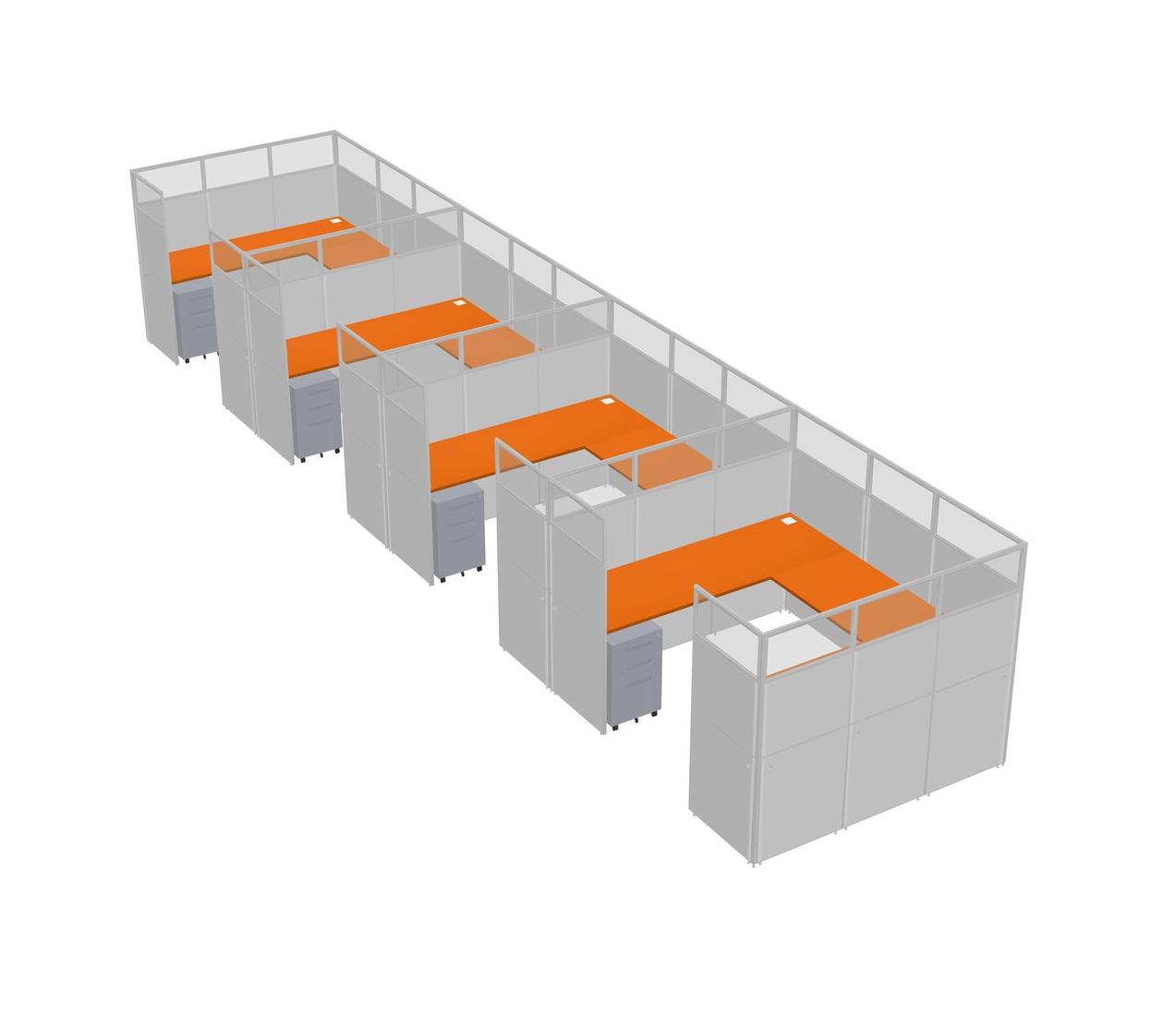 Orange U-shaped Panel System For 4 Person + Metal Mobile Drawers For 4 User(s)