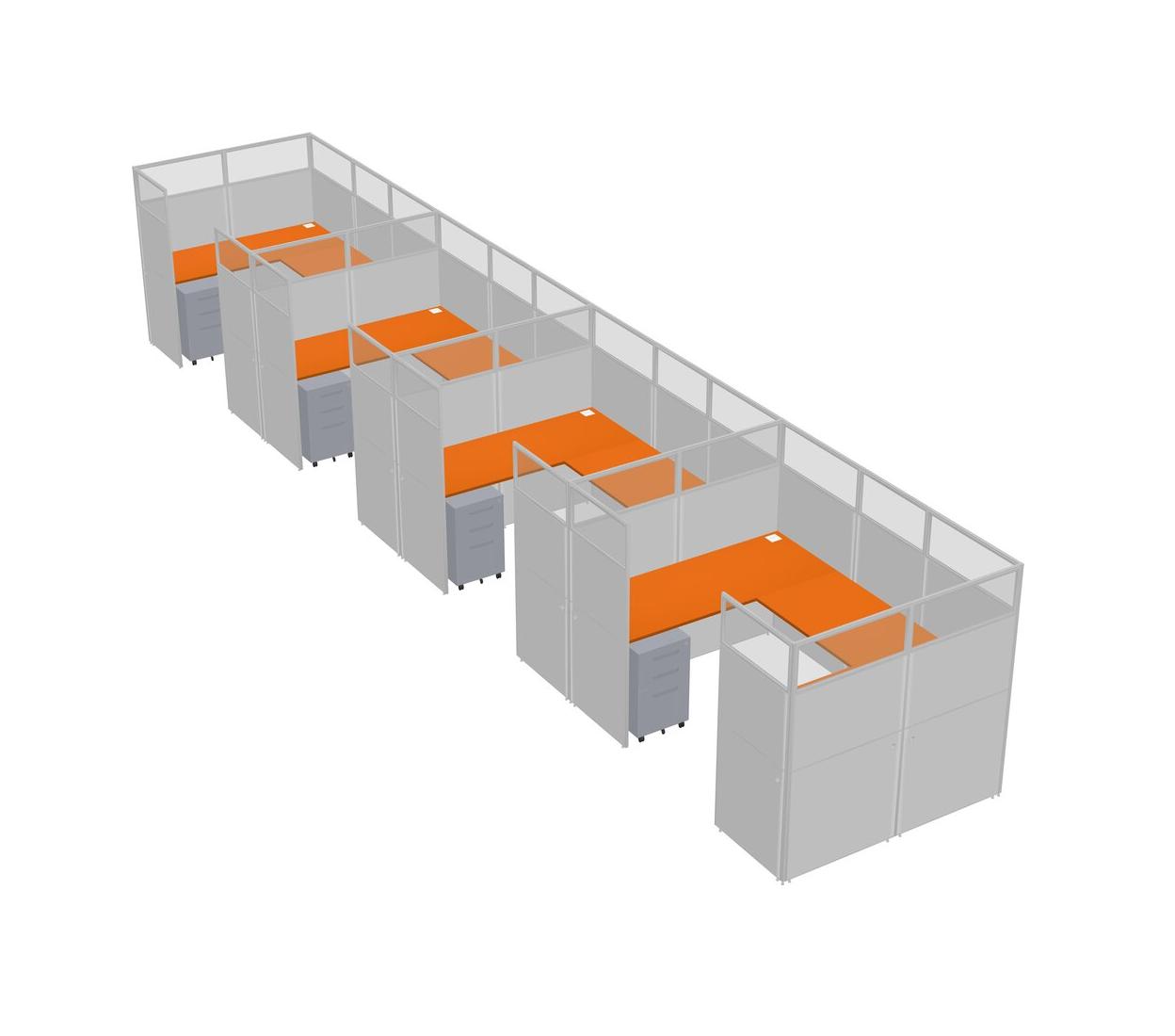 Orange U-shaped Panel System For 4 Person + Metal Mobile Drawers For 4 User(s)