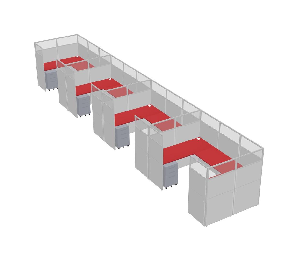 Prism Red U-shaped Panel System For 4 Person + Metal Mobile Drawers For 4 User(s)
