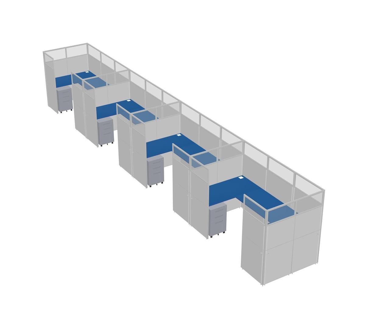 Prism Blue U-shaped Panel System For 4 Person + Metal Mobile Drawers For 4 User(s)