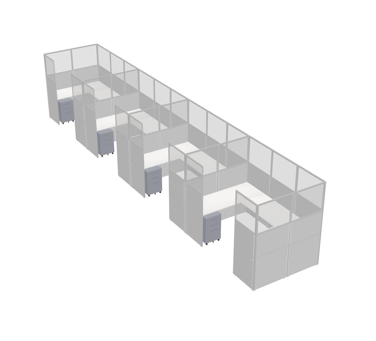 White U-shaped Panel System For 4 Person + Metal Mobile Drawers For 4 User(s)