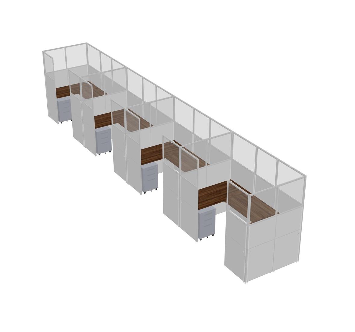 Columbia Walnut U-shaped Panel System For 4 Person + Metal Mobile Drawers For 4 User(s)
