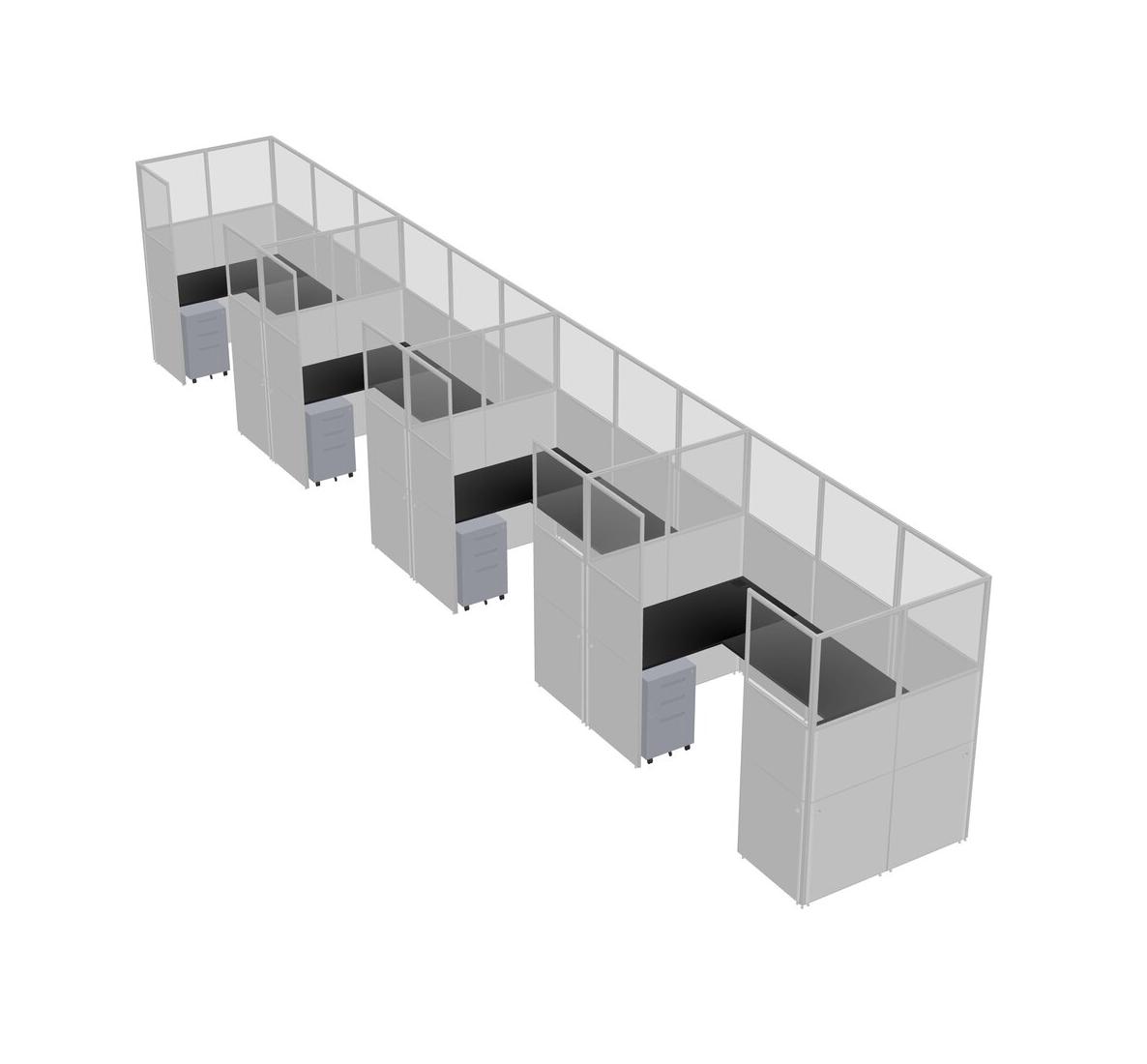 Black U-shaped Panel System For 4 Person + Metal Mobile Drawers For 4 User(s)