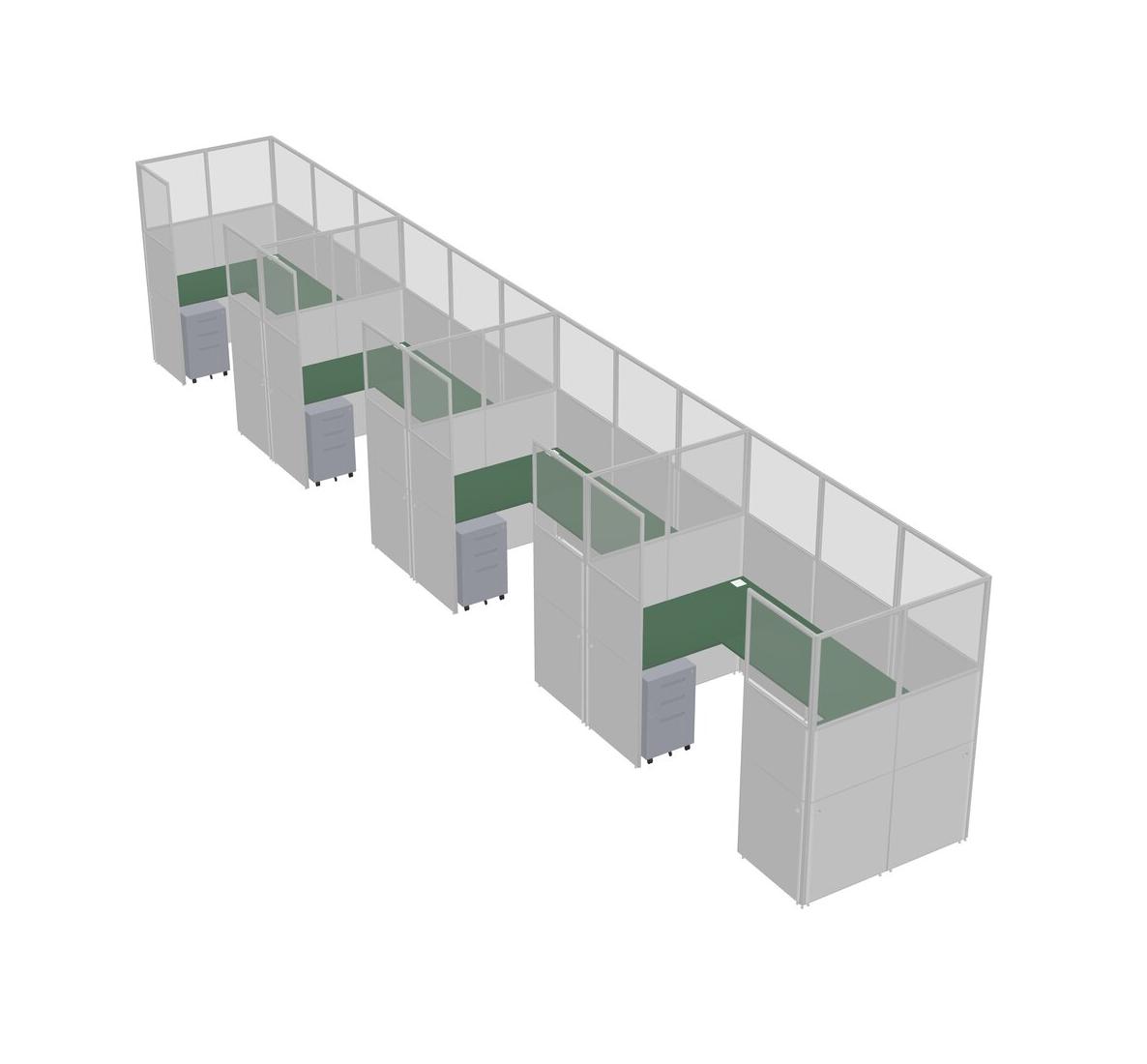 Green U-shaped Panel System For 4 Person + Metal Mobile Drawers For 4 User(s)