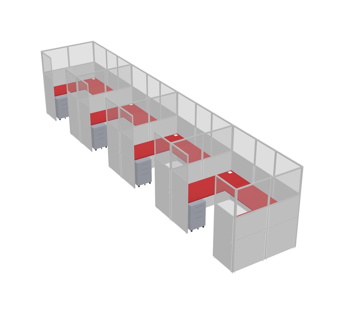 Prism Red U-shaped Panel System For 4 Person + Metal Mobile Drawers For 4 User(s)