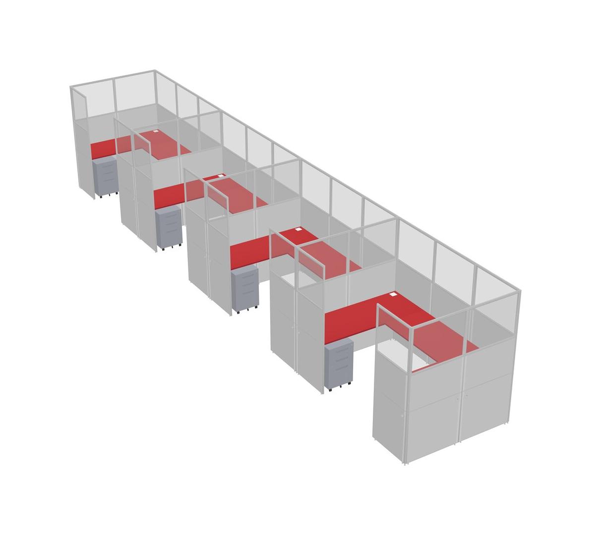 Prism Red U-shaped Panel System For 4 Person + Metal Mobile Drawers For 4 User(s)