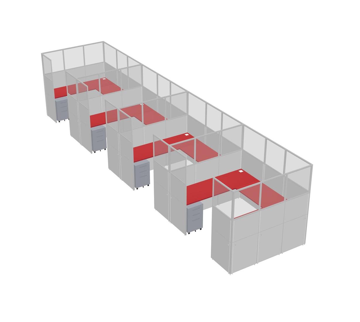 Prism Red U-shaped Panel System For 4 Person + Metal Mobile Drawers For 4 User(s)