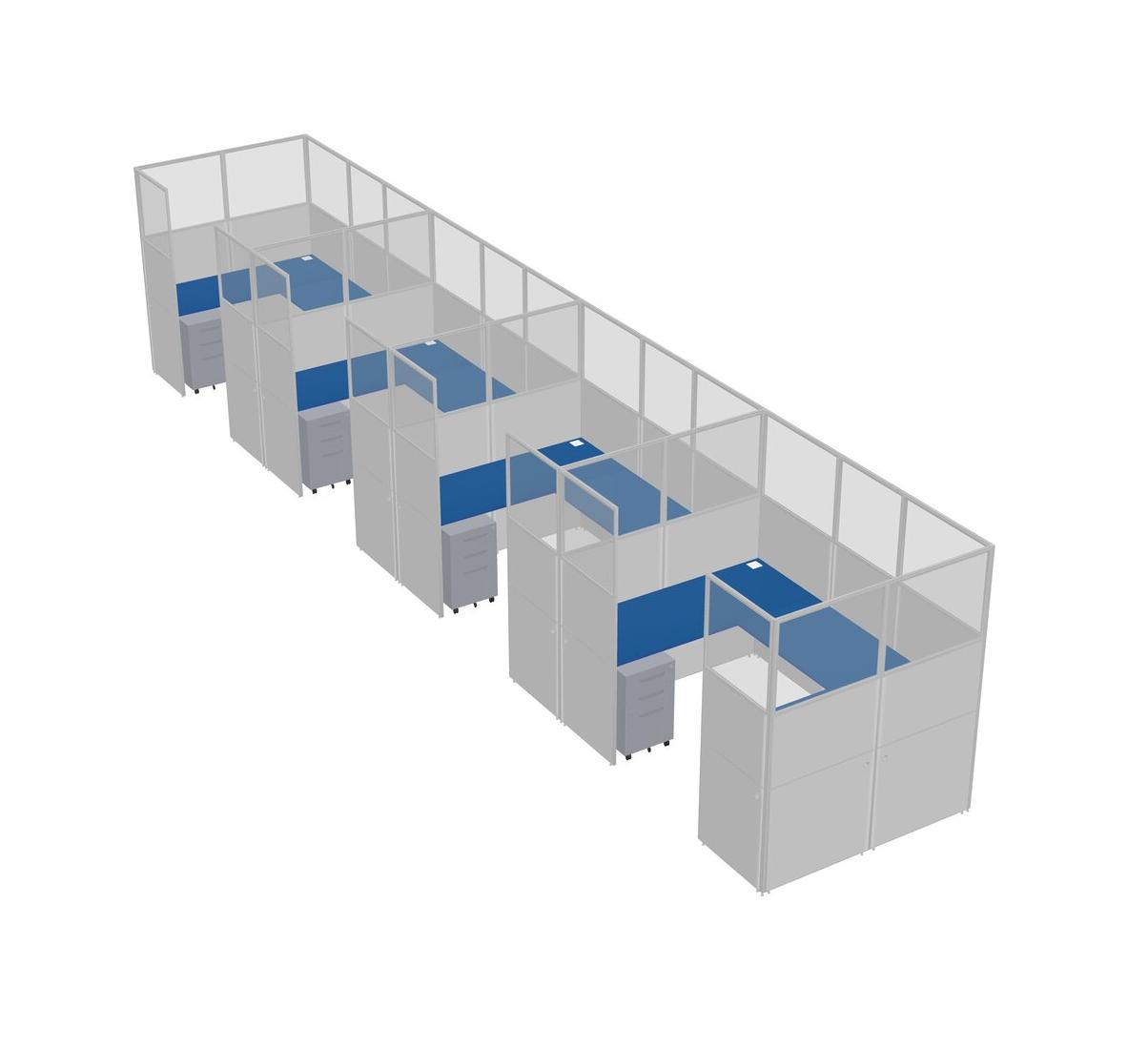 Prism Blue U-shaped Panel System For 4 Person + Metal Mobile Drawers For 4 User(s)