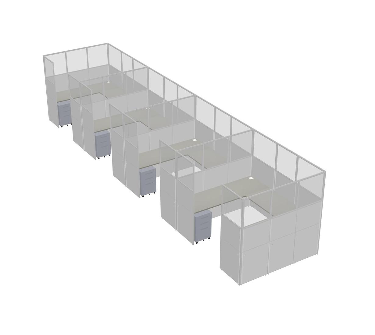 Grey Shadows U-shaped Panel System For 4 Person + Metal Mobile Drawers For 4 User(s)