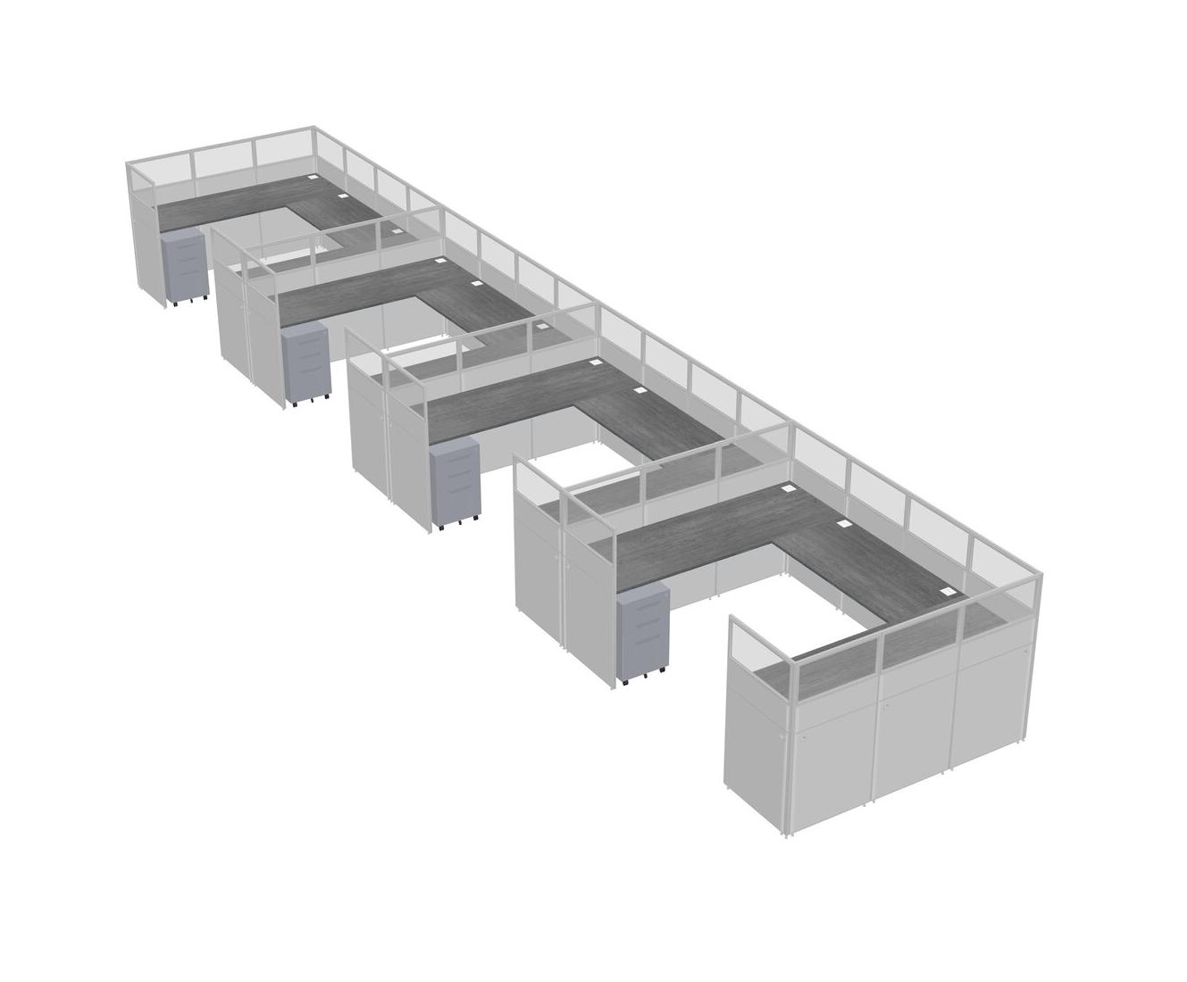 Grey U-shaped Panel System For 4 Person + Metal Mobile Drawers For 4 User(s)