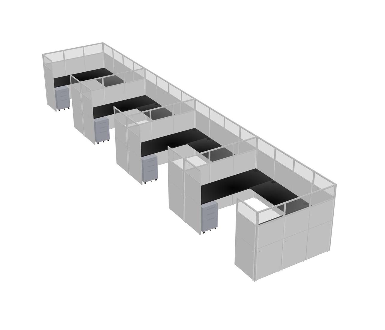 Black U-shaped Panel System For 4 Person + Metal Mobile Drawers For 4 User(s)
