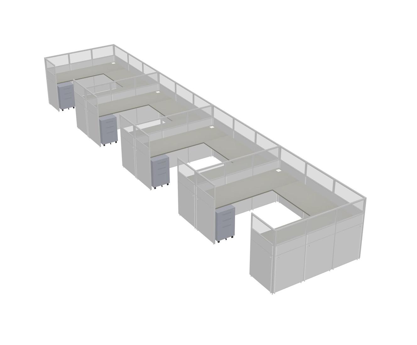 Grey Shadows U-shaped Panel System For 4 Person + Metal Mobile Drawers For 4 User(s)
