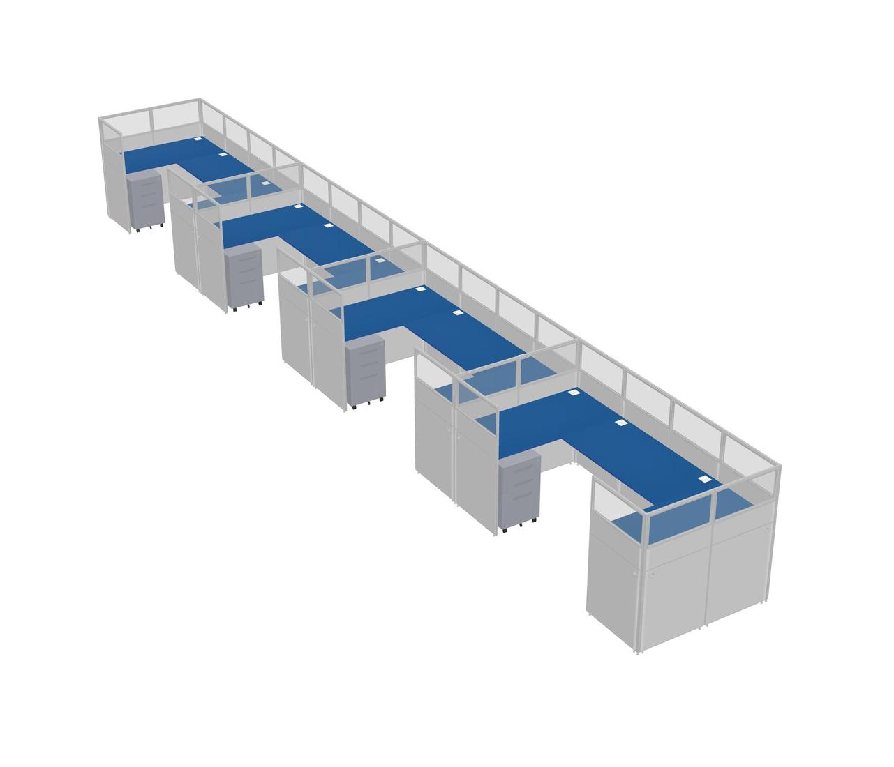 Prism Blue U-shaped Panel System For 4 Person + Metal Mobile Drawers For 4 User(s)