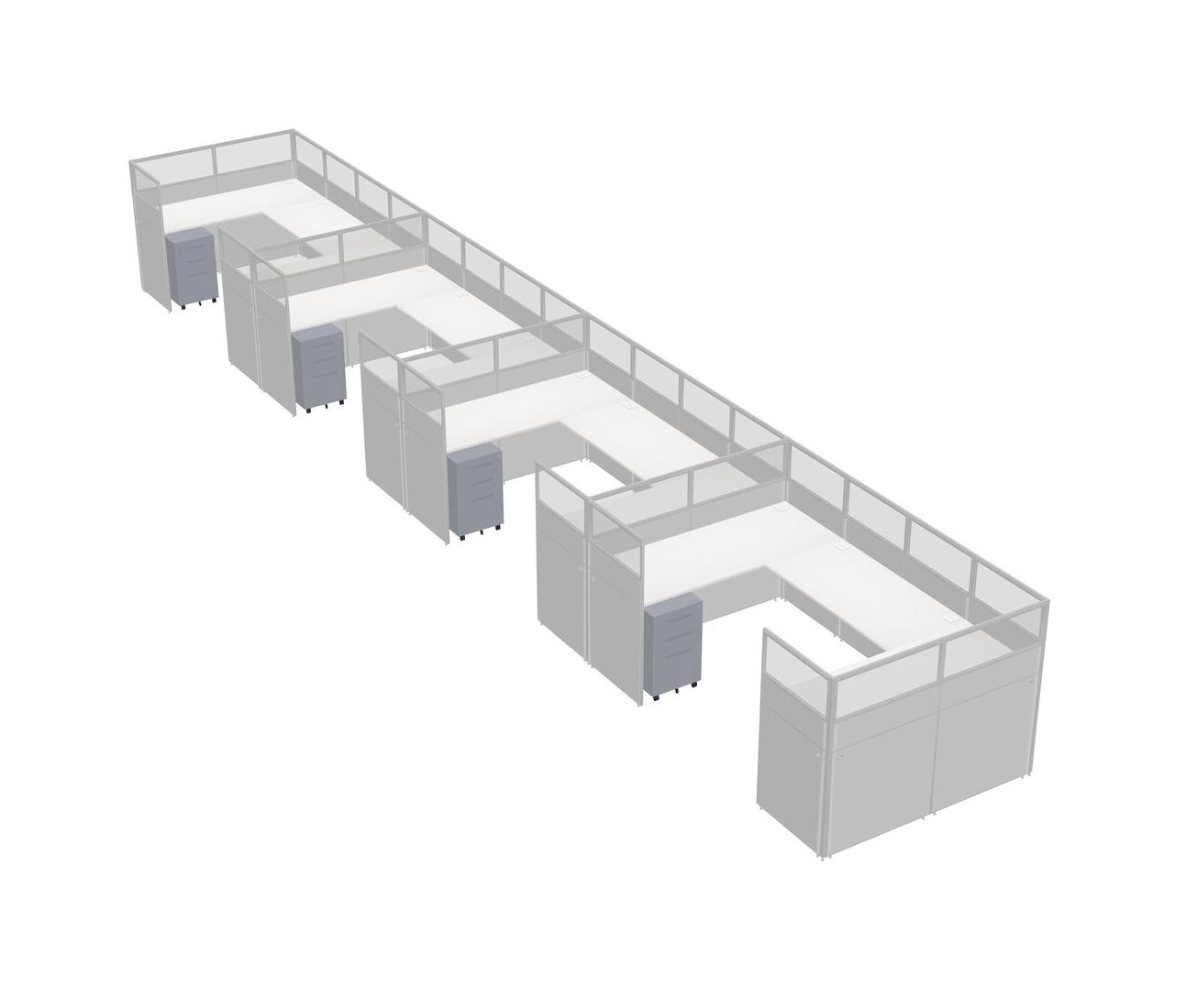 White U-shaped Panel System For 4 Person + Metal Mobile Drawers For 4 User(s)