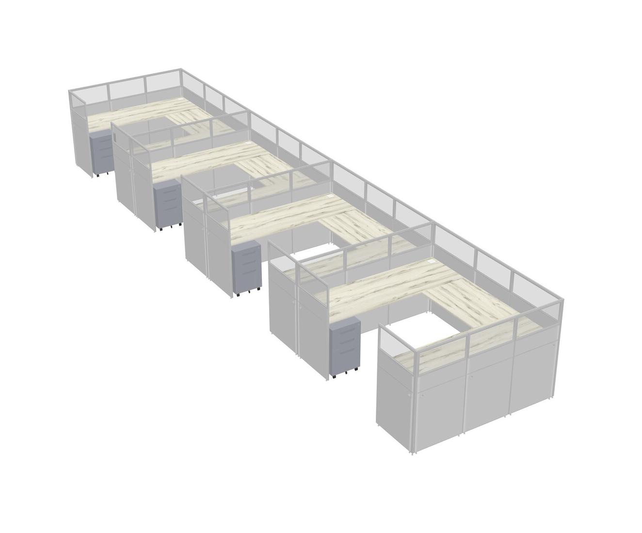 Heinne Holz U-shaped Panel System For 4 Person + Metal Mobile Drawers For 4 User(s)