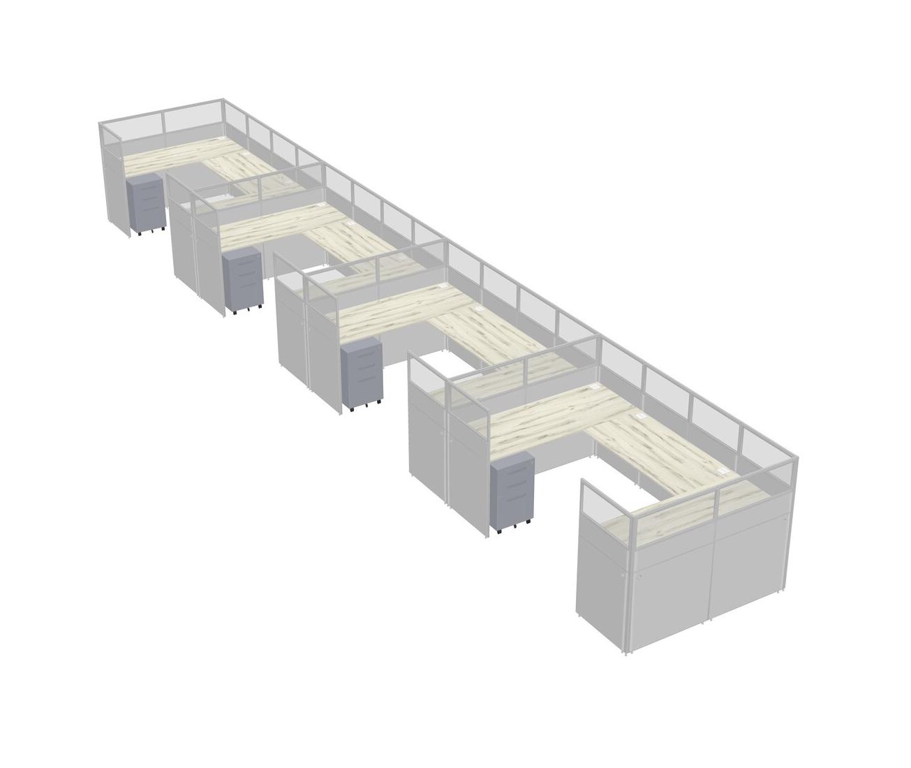 Heinne Holz U-shaped Panel System For 4 Person + Metal Mobile Drawers For 4 User(s)