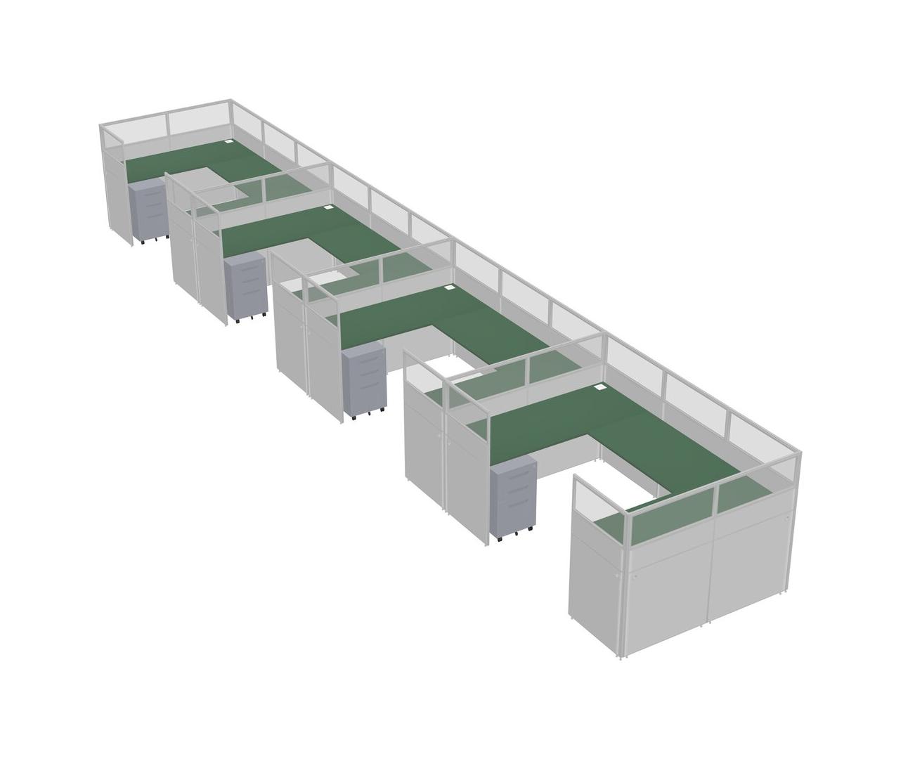 Green U-shaped Panel System For 4 Person + Metal Mobile Drawers For 4 User(s)