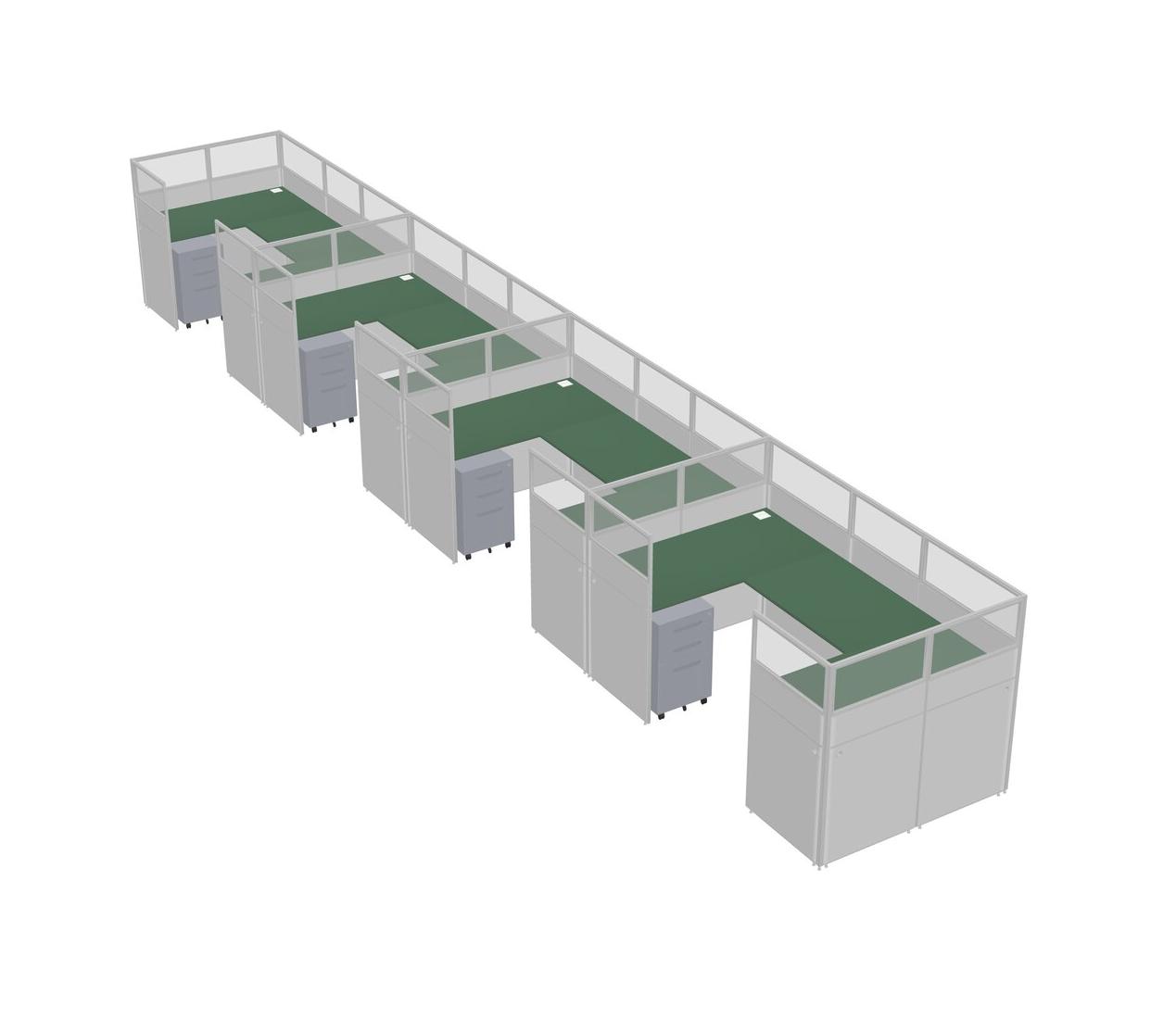 Green U-shaped Panel System For 4 Person + Metal Mobile Drawers For 4 User(s)