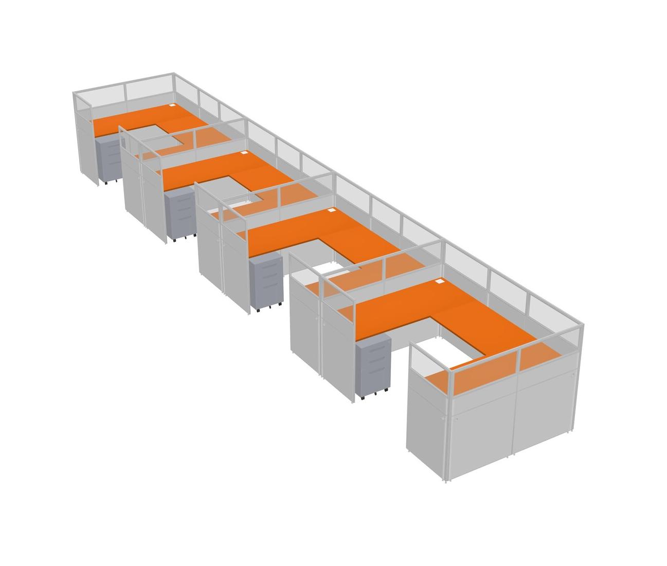 Orange U-shaped Panel System For 4 Person + Metal Mobile Drawers For 4 User(s)