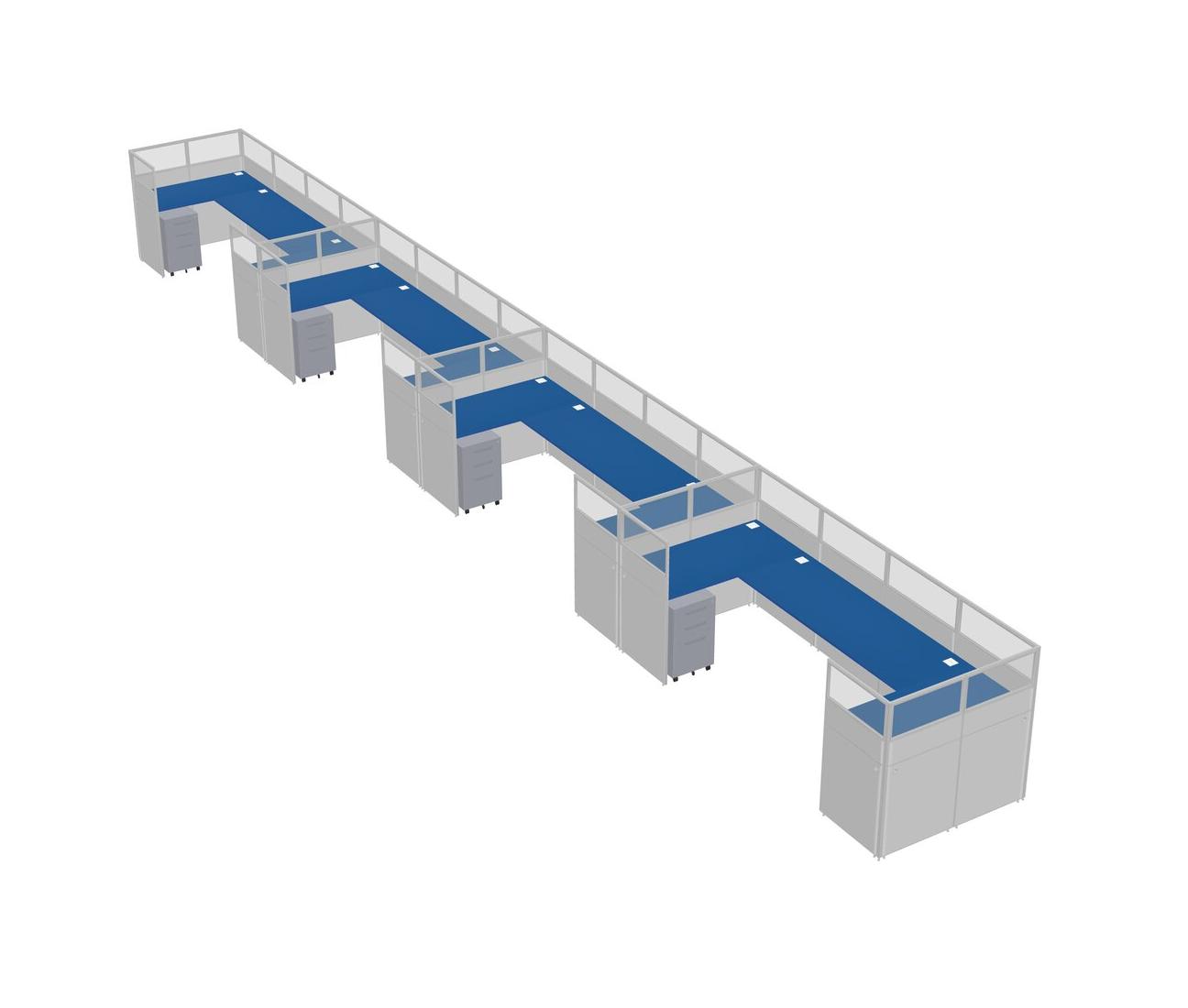 Prism Blue U-shaped Panel System For 4 Person + Metal Mobile Drawers For 4 User(s)