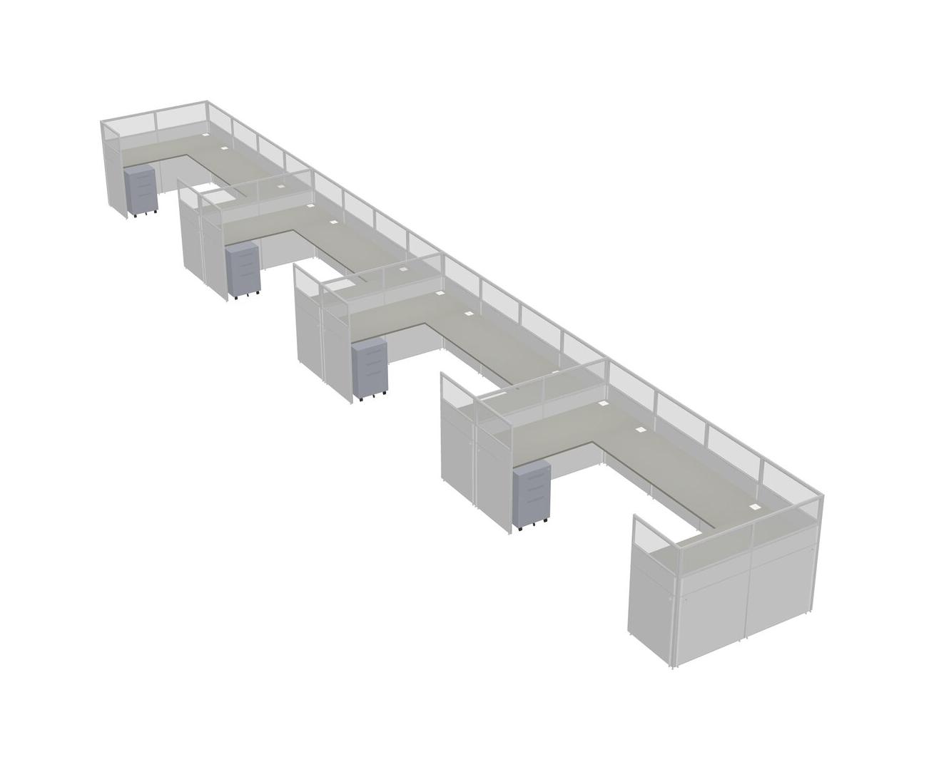 Grey Shadows U-shaped Panel System For 4 Person + Metal Mobile Drawers For 4 User(s)
