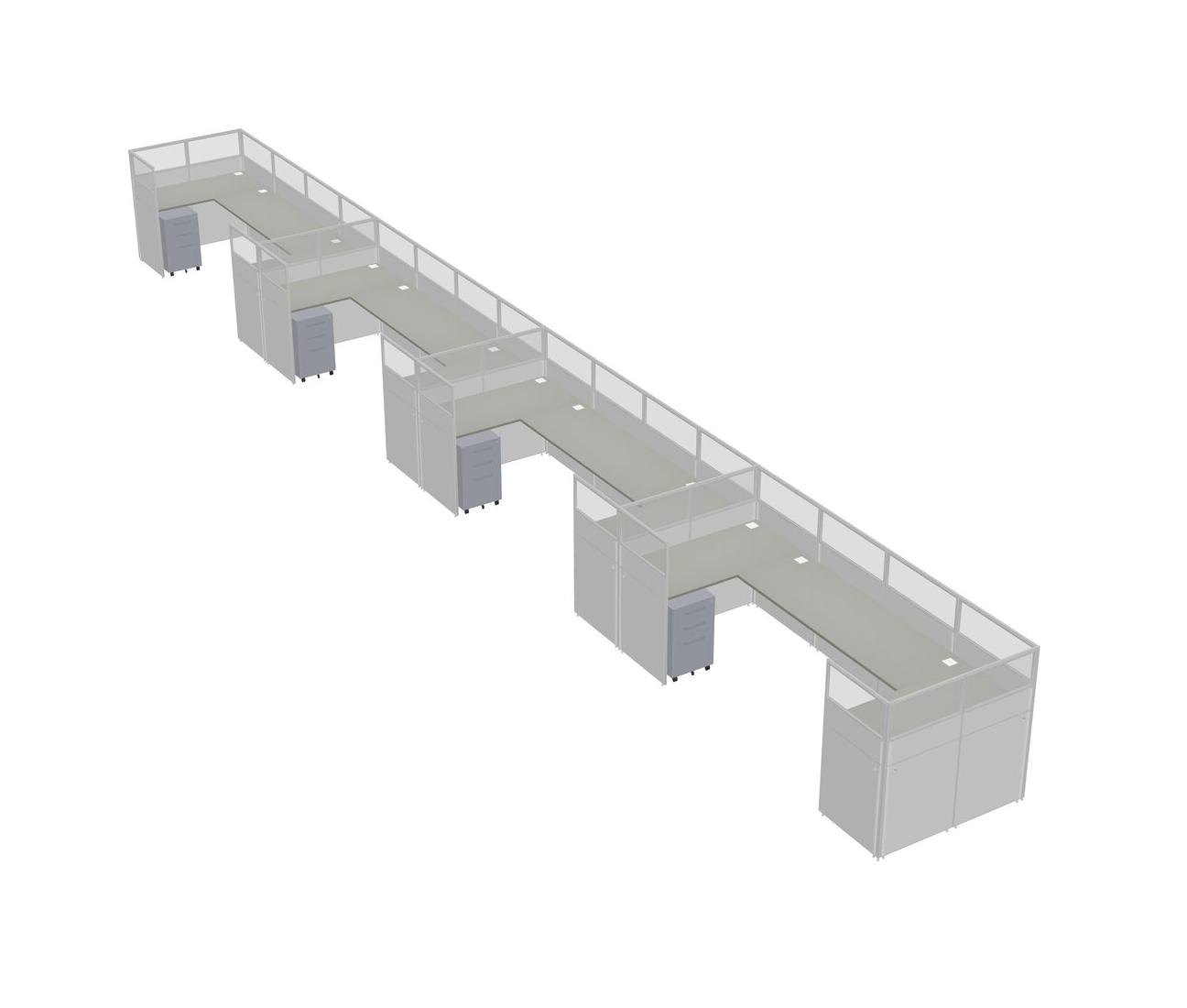 Grey Shadows U-shaped Panel System For 4 Person + Metal Mobile Drawers For 4 User(s)