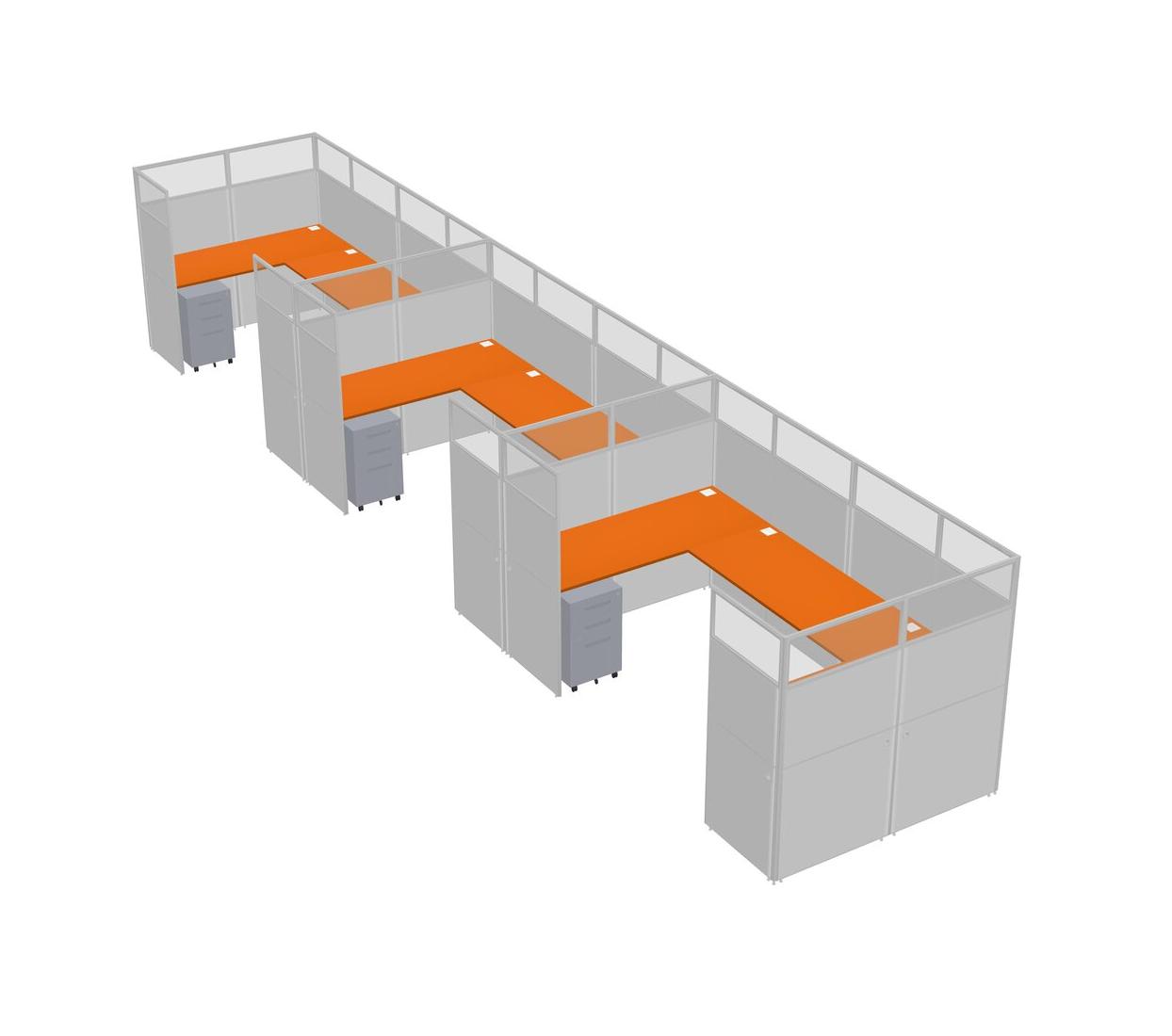 Orange U-shaped Panel System For 3 Person + Metal Mobile Drawers For 3 User(s)