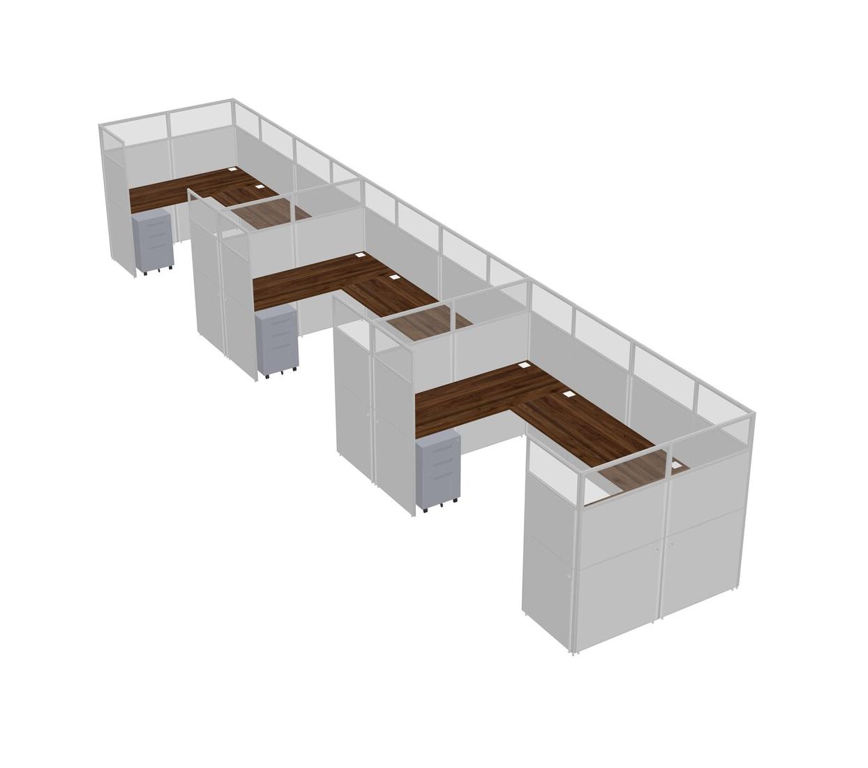 Columbia Walnut U-shaped Panel System For 3 Person + Metal Mobile Drawers For 3 User(s)