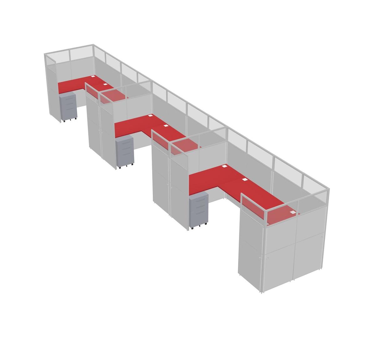Prism Red U-shaped Panel System For 3 Person + Metal Mobile Drawers For 3 User(s)