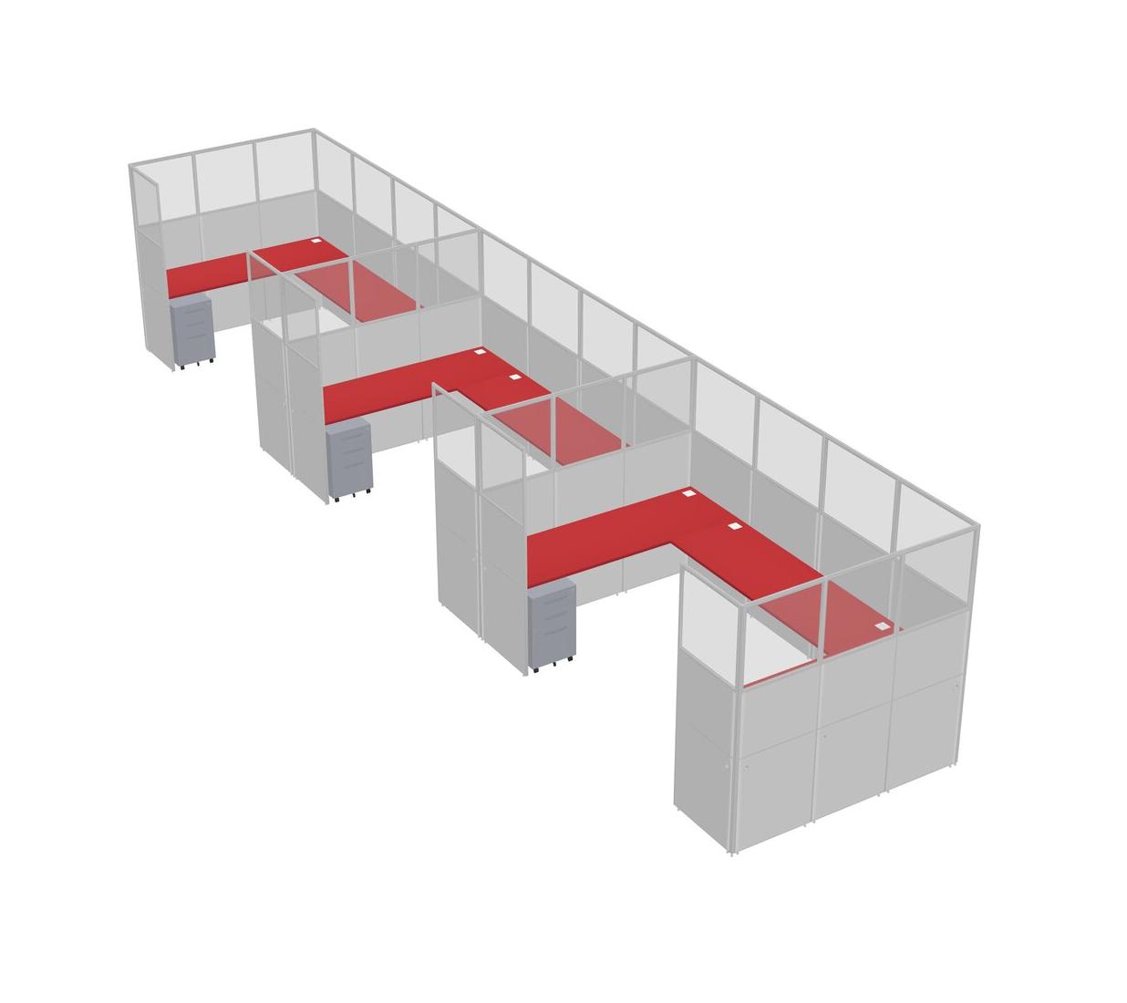Prism Red U-shaped Panel System For 3 Person + Metal Mobile Drawers For 3 User(s)