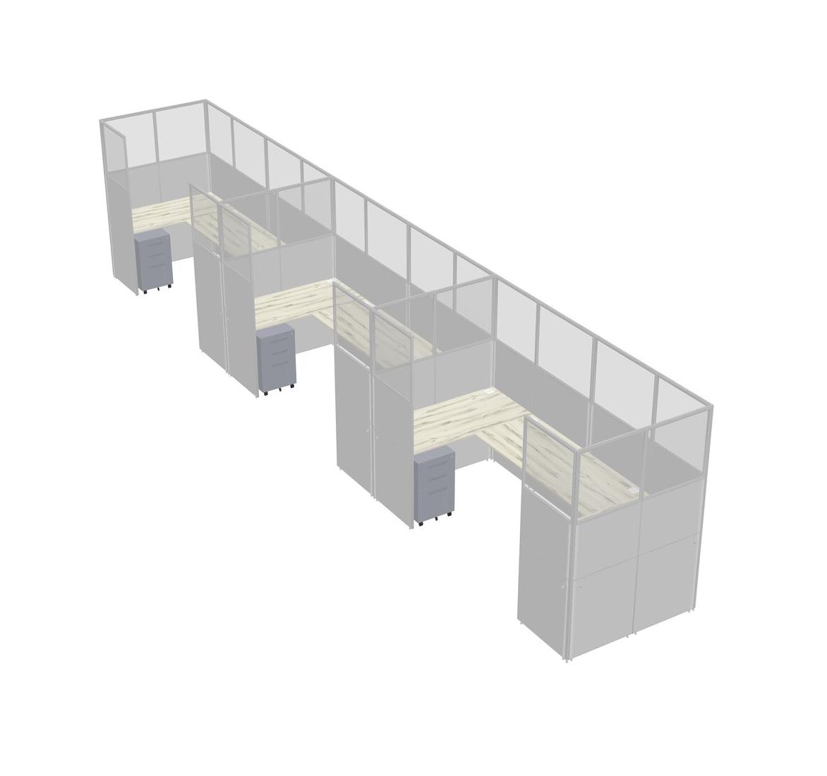 Heinne Holz U-shaped Panel System For 3 Person + Metal Mobile Drawers For 3 User(s)