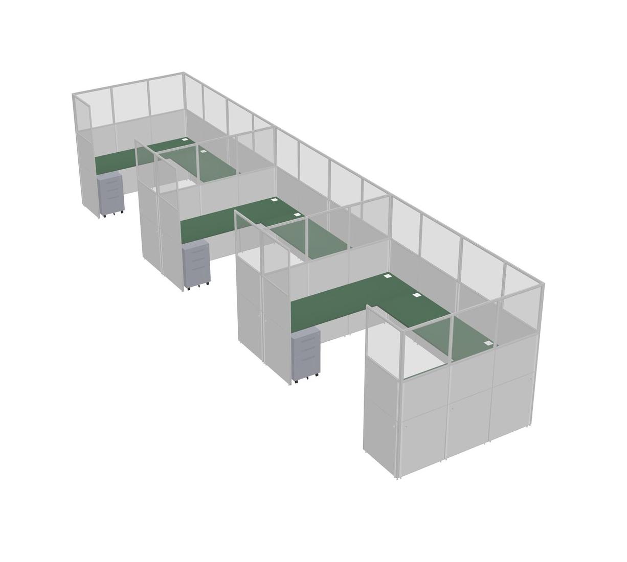 Green U-shaped Panel System For 3 Person + Metal Mobile Drawers For 3 User(s)