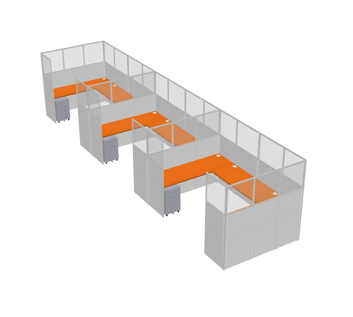 Orange U-shaped Panel System For 3 Person + Metal Mobile Drawers For 3 User(s)