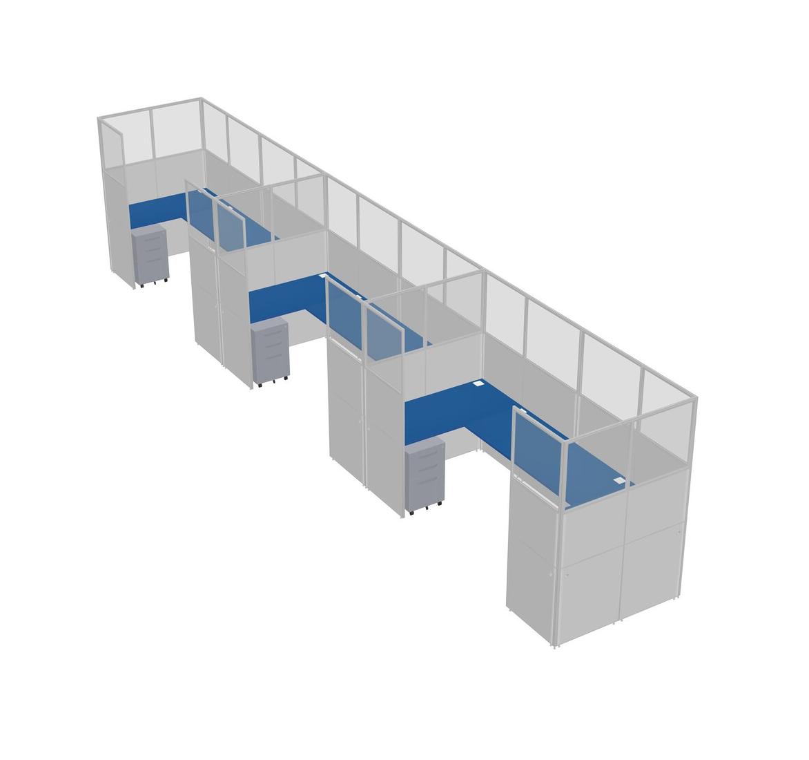 Prism Blue U-shaped Panel System For 3 Person + Metal Mobile Drawers For 3 User(s)