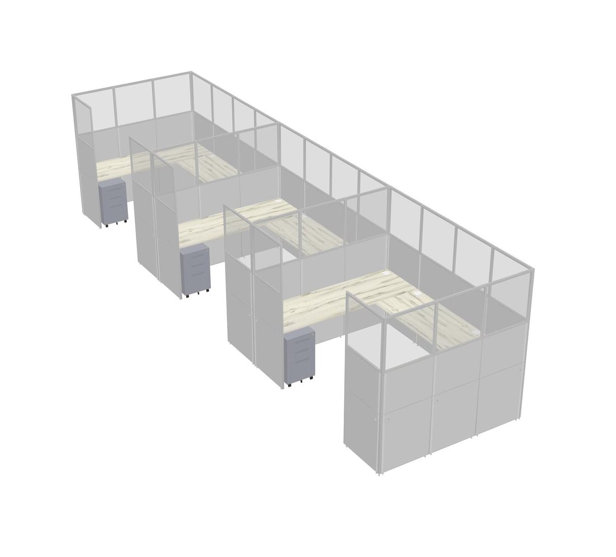 Heinne Holz U-shaped Panel System For 3 Person + Metal Mobile Drawers For 3 User(s)