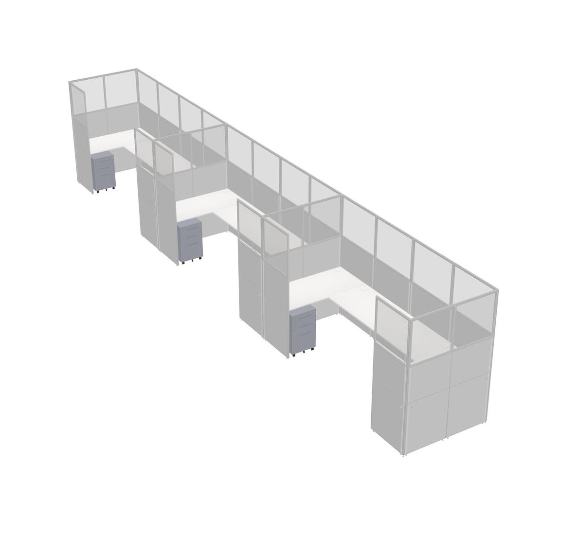 White U-shaped Panel System For 3 Person + Metal Mobile Drawers For 3 User(s)