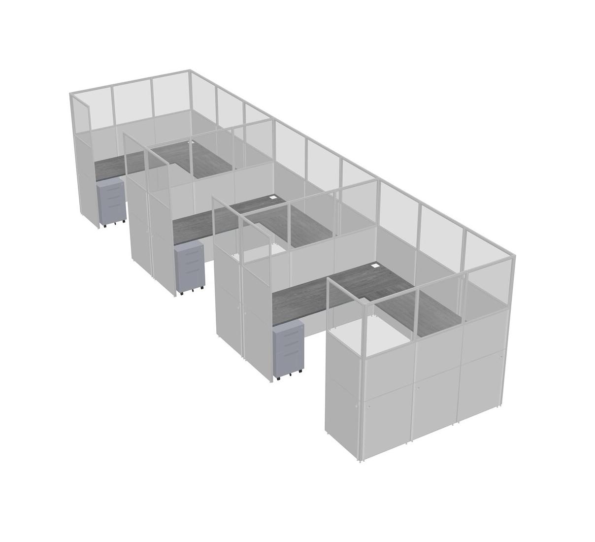 Grey U-shaped Panel System For 3 Person + Metal Mobile Drawers For 3 User(s)