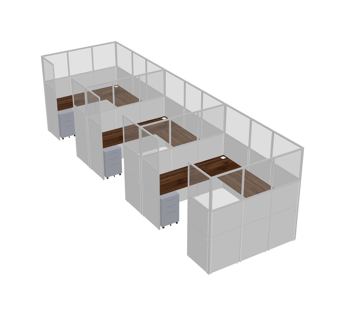 Columbia Walnut U-shaped Panel System For 3 Person + Metal Mobile Drawers For 3 User(s)