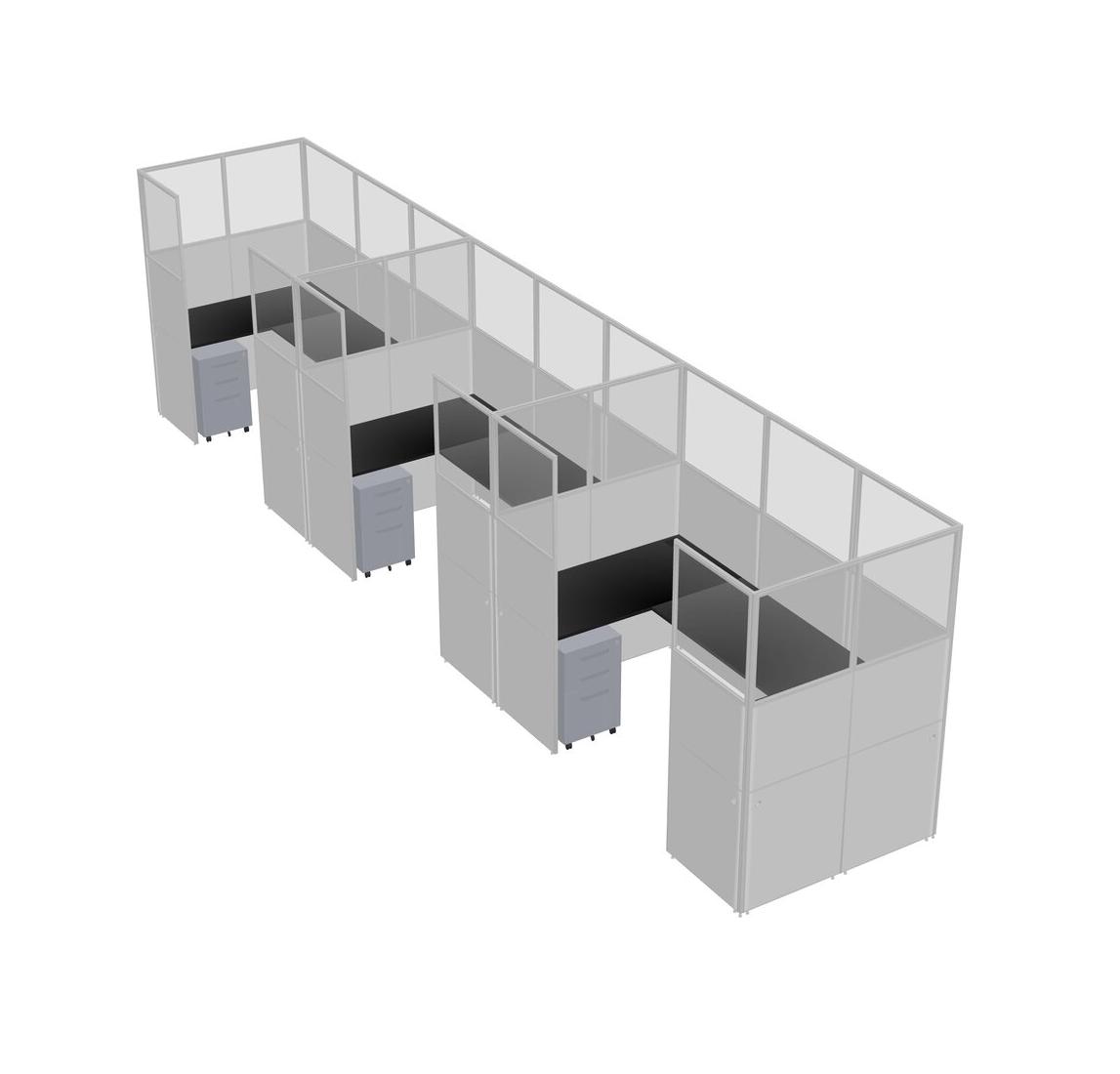 Black U-shaped Panel System For 3 Person + Metal Mobile Drawers For 3 User(s)