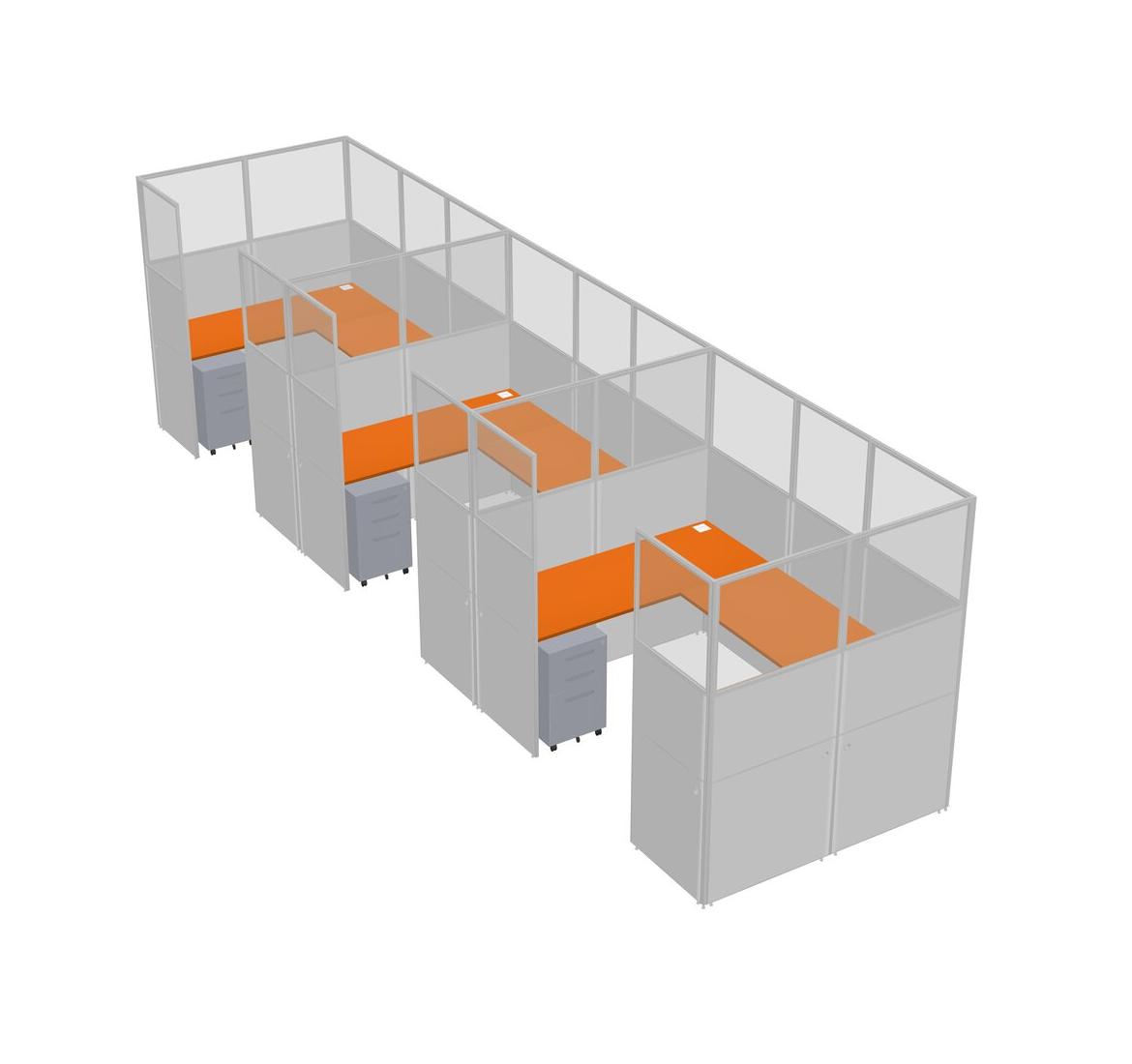 Orange U-shaped Panel System For 3 Person + Metal Mobile Drawers For 3 User(s)