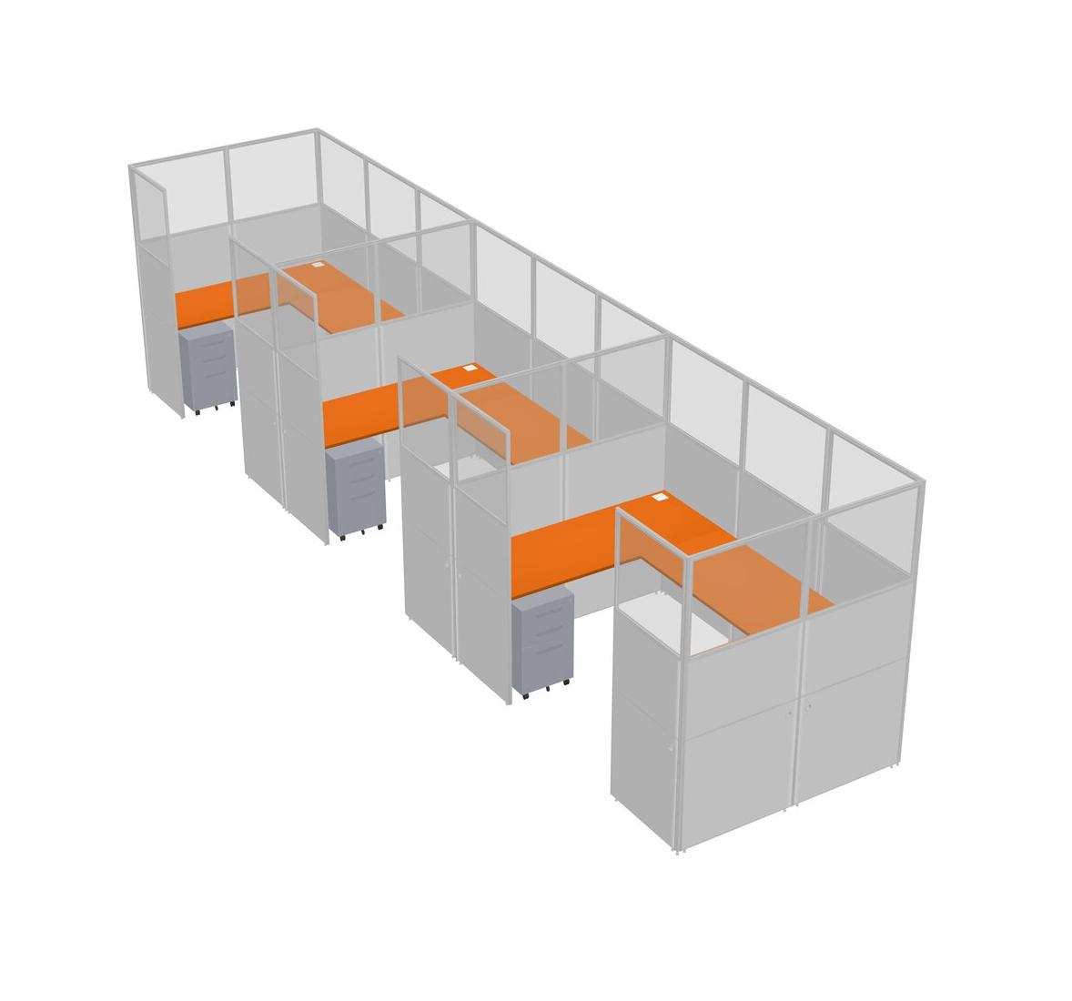Orange U-shaped Panel System For 3 Person + Metal Mobile Drawers For 3 User(s)