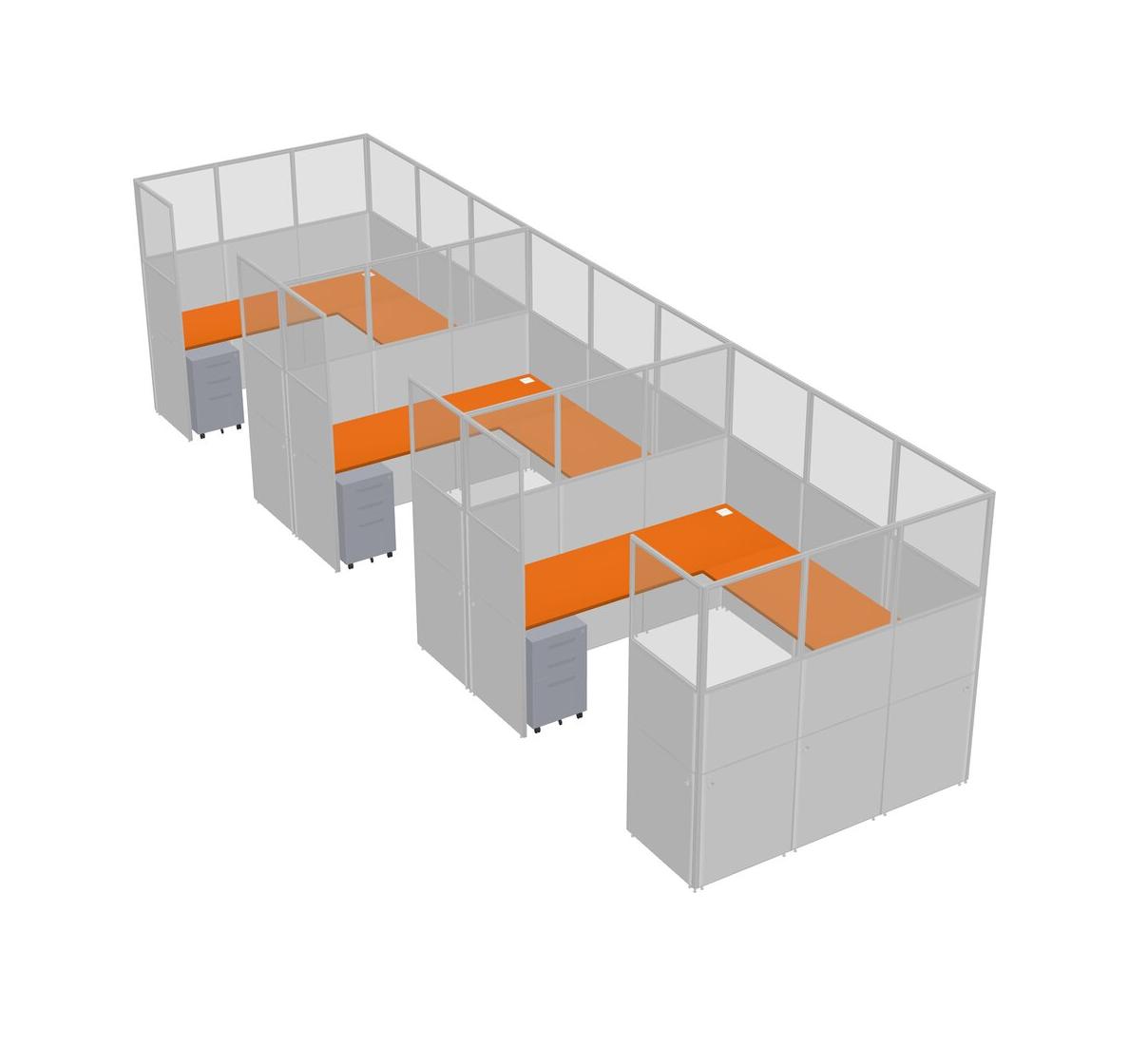 Orange U-shaped Panel System For 3 Person + Metal Mobile Drawers For 3 User(s)