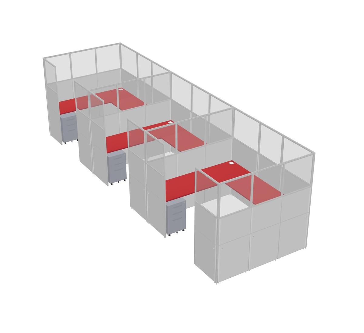 Prism Red U-shaped Panel System For 3 Person + Metal Mobile Drawers For 3 User(s)