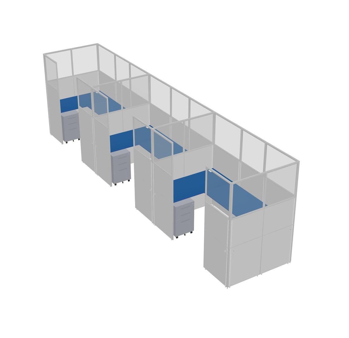 Prism Blue U-shaped Panel System For 3 Person + Metal Mobile Drawers For 3 User(s)